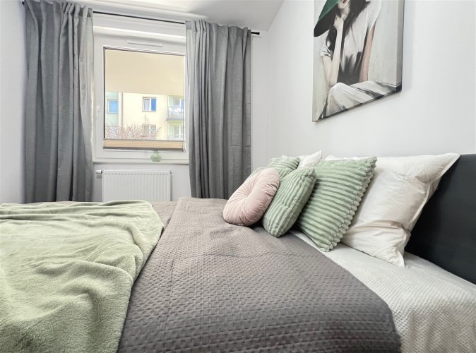 Mieszkanie posiada ekspozycję okien od strony południowej, dzięki czemu wnętrza są bardzo jasne i dobrze doświetlone przez cały dzień. Wszystkie okna są wyposażone w rolety. Wnętrze utrzymane jest w stonowanej kolorystyce, która daje dużą swobodę aranżacji i pozwala dopasować przestrzeń do własnego stylu.