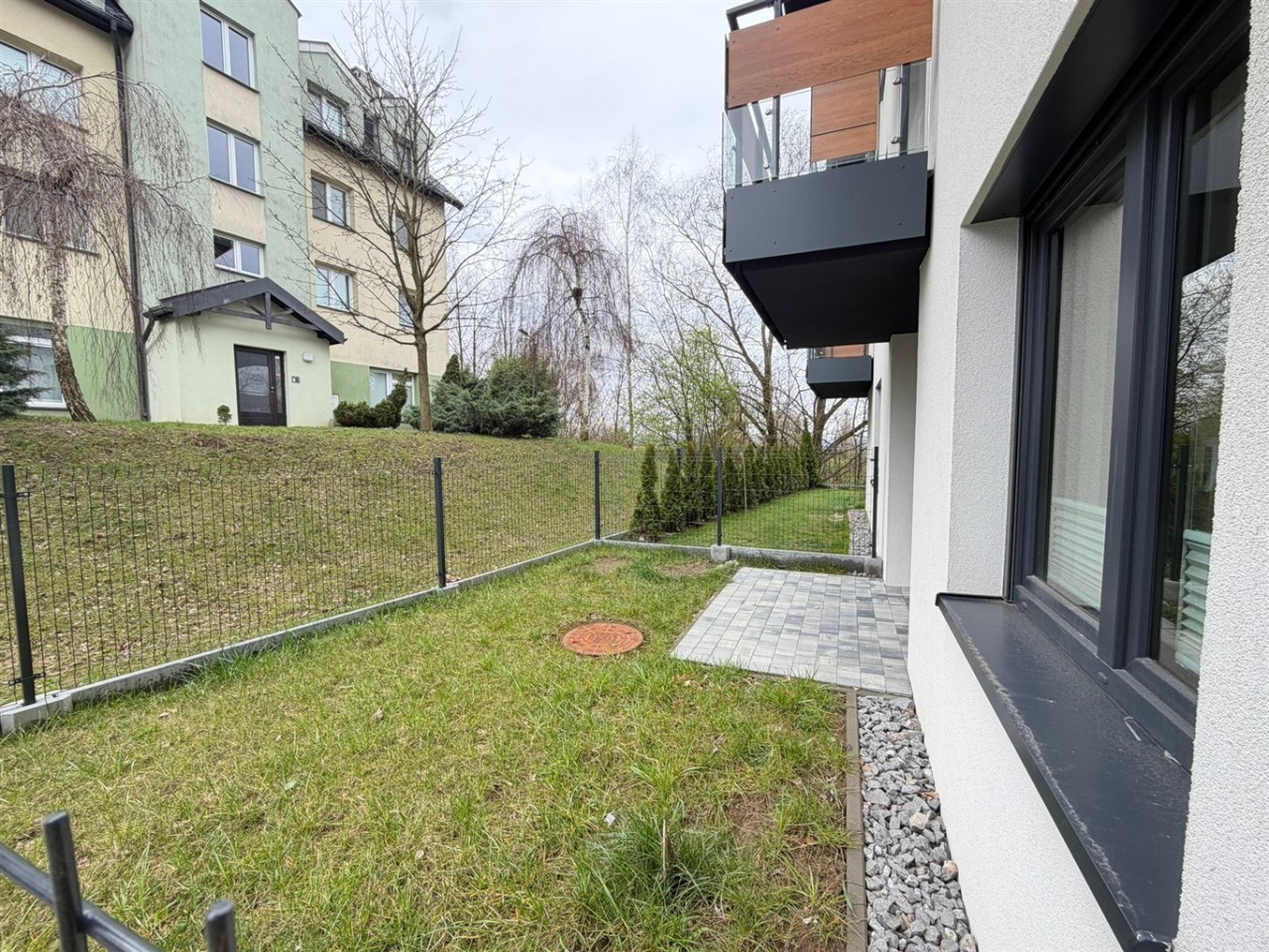 W pobliżu znajdują się tereny zielone, co sprzyja aktywnemu wypoczynkowi. To miejsce idealne dla osób, które szukają połączenia nowoczesności z bliskością natury.