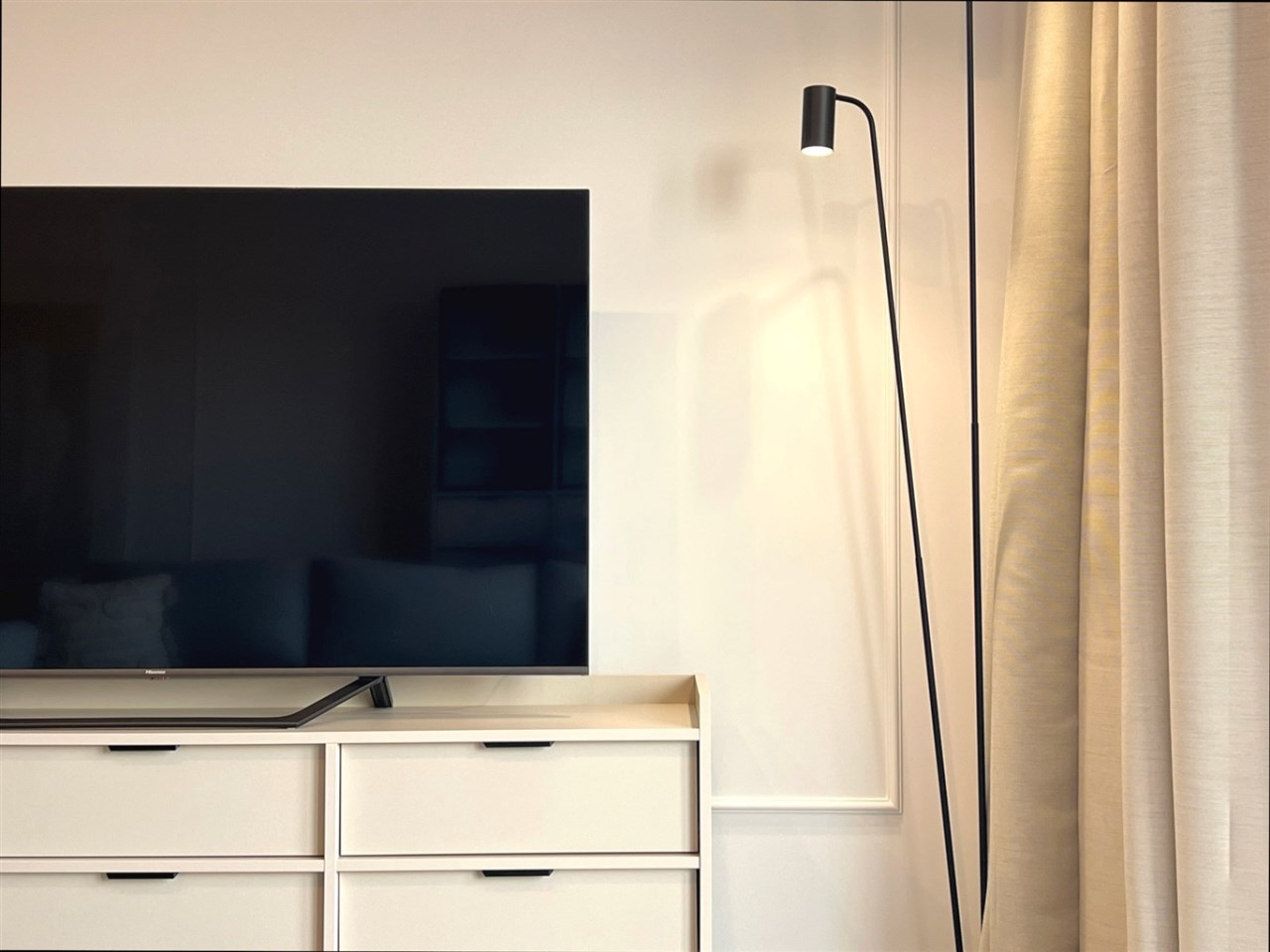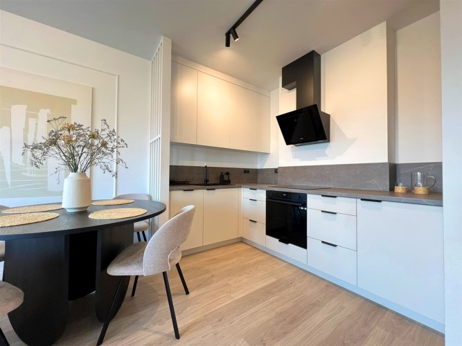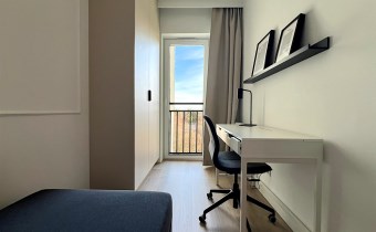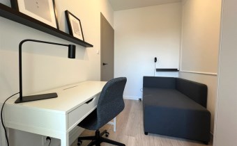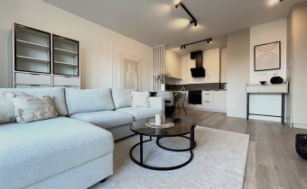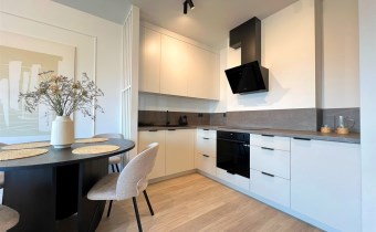 Mieszkanie zostało wykończone w wysokim standardzie, z dbałością o każdy detal. W kuchni znajduje się pełne wyposażenie AGD – lodówka, zmywarka, piekarnik oraz płyta grzewcza zaś sypialnie zostały wyposażone w praktyczne zabudowane szafy, wygodne łóżka i biurko do pracy.