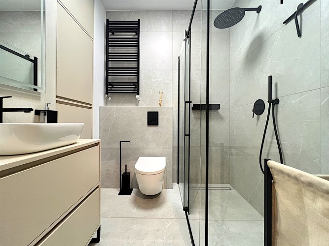 Lokal znajduje się na 3. piętrze nowoczesnego budynku z windą. Mieszkanie oferuje przestronny salon z aneksem kuchennym, który prowadzi na balkon z widokiem na góry. Dwie wygodne, w pełni umeblowane sypialnie zapewniają komfort i możliwość wprowadzenia się od zaraz. Do dyspozycji najemców jest również funkcjonalna łazienka z prysznicem i WC oraz praktyczne pomieszczenie gospodarcze wyposażone w pralkę i półki do przechowywania.