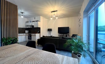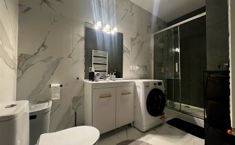 Mieszkanie znajduje się na drugim piętrze w nowoczesnym dwupiętrowym budynku.