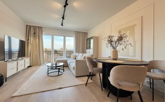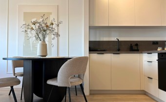 Mieszkanie zostało wykończone w wysokim standardzie, z dbałością o każdy detal. W kuchni znajduje się pełne wyposażenie AGD – lodówka, zmywarka, piekarnik oraz płyta grzewcza zaś sypialnie zostały wyposażone w praktyczne zabudowane szafy, wygodne łóżka i biurko do pracy.